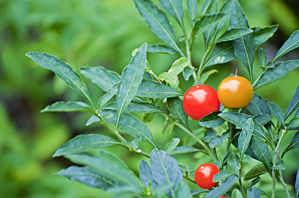 名 称 フユサンゴ(冬珊瑚) 花言葉 神秘的 ※メキシコ南部~ブラジルを原産とするナス科の常緑低木。明治時代に園芸用として渡来したが、現在では各地で野生化している。花期は夏で白い小さな花をつけるが、主に鑑賞されるのは花の後、秋~冬に出来る赤い球形の果実です。 |